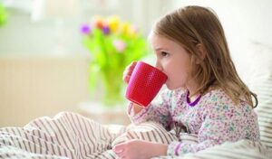 Zudem hat Ihr Kind während des gesamten Krankheitsverlaufs einen erhöhten Flüssigkeitsbedarf. Daher sollten Sie darauf achten, dass Ihr Kind genug trinkt. Am besten eignet sich Wasser oder mit Zucker gesüßter Tee, vor allem, wenn das Kind wenig isst. Ihr Kind braucht pro Tag etwa 50 bis 80 ml Flüssigkeit pro Kilogramm Körpergewicht. Das entspricht bei einem 2-jährigen Jungen, der 12 kg wiegt, 600–960 ml (etwa 3 bis 5 Tassen Tee). Junge Säuglinge werden gestillt bzw. erhalten Formelnahrung.