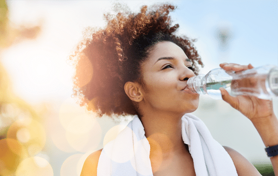 > Generell sollte auf eine ausreichende Trinkmenge geachtet werden. Frauen profitieren besonders davon, ihr Trinkvolumen zu erhöhen. Hier sollten mindestens 2,5 l das Ziel sein (davon mindestens 1,5 l Wasser).