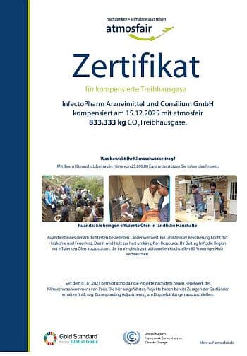 InfectoPharm hat sich entschieden, für unsere jährlichen CO2-Emissionen mit der gemeinnützigen Klimaschutzorganisation atmosfair zusammenarbeiten.